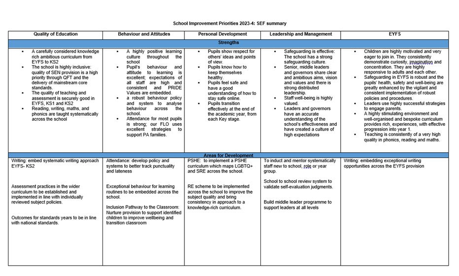 At Staplehurst we believe that we are a continually improving school and effective school self-evaluation is a fundamental force in achieving school improvement.